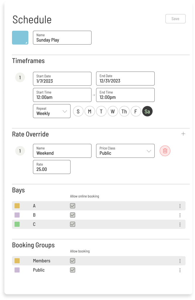 Indoor golf clubs come in all shapes and sizes, each with its unique requirements. At Registry, we understand this diversity and believe that flexibility is key. Our app allows club managers to customize tee sheet settings precisely to their preferences. Whether it’s setting up custom schedules based on the day or hour or implementing rate overrides for specific occasions, Registry offers unparalleled versatility.